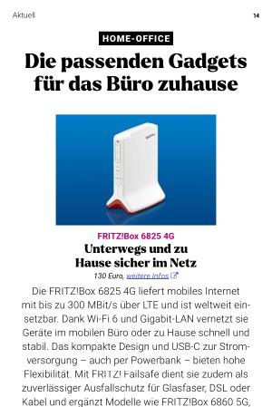 FRITZ! Box 6825 4G Unterwegs und zu Hause sicher im Netz 130 Euro, weitere Infos �