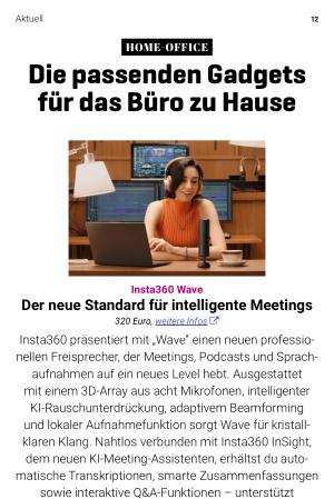 Insta360 präsentiert mit „ Wave“ einen neuen professionellen Freisprecher, der Meetings, Podcasts und Sprachaufnahmen auf ein neues Level hebt. Ausgestattet mit einem 3D-Array aus acht Mikrofonen, intelligenter KI-Rauschunterdrückung, adaptivem Beamforming und lokaler Aufnahmefunktion sorgt Wave für kristallklaren Klang. Nahtlos verbunden mit Insta360 InSight, dem neuen KI-Meeting-Assistenten, erhältst du automatische Transkriptionen, smarte Zusammenfassungen sowie interaktive Q & A-Funktionen – unterstützt von ChatGPT und Gemini.