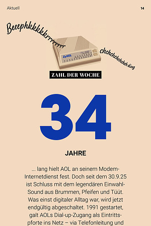 ... lang hielt AOL an seinem Modem- Internetdienst fest. Doch seit dem 30.9.25 ist Schluss mit dem legendären Einwahl- Sound aus Brummen, Pfeifen und Tüüt. Was einst digitaler Alltag war, wird jetzt endgültig abgeschaltet. 1991 gestartet, galt AOLs Dial-up-Zugang als Eintrittspforte ins Netz – via Telefonleitung und Software-CD. Zu Spitzenzeiten schaffte es AOL sogar auf Millionen Titelblätter – dank Klebe-CDs in Zeitschriften. Noch 2021 nutzten rund 1,5 Millionen Amerikaner den Dienst, wenn auch nur wenige tatsächlich per Modem. In ländlichen Regionen der USA bleibt als Alternative oft nur teures Satelliteninternet. Damit endet ein Kapitel Netzgeschichte.