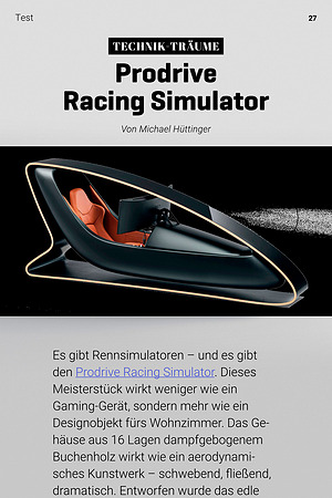 Es gibt Rennsimulatoren – und es gibt den Prodrive Racing Simulator. Dieses Meisterstück wirkt weniger wie ein Gaming-Gerät, sondern mehr wie ein Designobjekt fürs Wohnzimmer. Das Gehäuse aus 16 Lagen dampfgebogenem Buchenholz wirkt wie ein aerodynamisches Kunstwerk – schwebend, fließend, dramatisch. Entworfen wurde das edle Stück von keinem Geringeren als Automobildesigner Ian Callum, der unter anderem Aston Martins formte. Das Ergebnis: ein Cockpit, das die Eleganz klassischer Gran Turismos mit der Zukunft digitaler Immersion vereint.