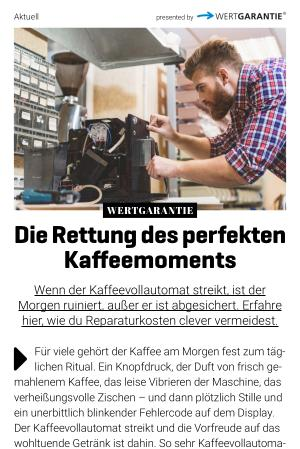 „ Wer seine Geräte bei Wertgarantie versichert, bekommt das Rundum-Sorglos-Paket: Bei Fragen zu Schaden, Beitrag oder Vertragserweiterung wie z. B. Diebstahlschutz bei Smartphones ist unser Kundenservice 24 / 7 erreichbar – per Telefon, E-Mail, Chat oder WhatsApp. Und durch unsere enge Zusammenarbeit mit qualifizierten Werkstätten und Werkskundendiensten laufen Schadenabwicklung und Reparatur bei uns reibungslos und vor allem schnell ab. So müssen Kunden nicht lange ohne ihre Geräte auskommen“, erklärt Sebastian Scholta, Abteilungsleiter Kundenservice bei Wertgarantie. Statt Stress, Ärger und Extrakosten genießen Kaffeeliebhaber mit dem Wertgarantie Komplettschutz ihr Lieblingsgetränk weiterhin ganz entspannt – Tasse für Tasse.