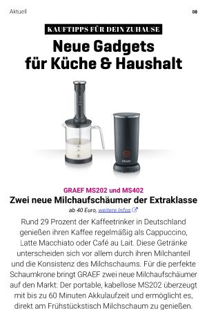 GRAEF MS202 und MS402 Zwei neue Milchaufschäumer der Extraklasse ab 40 Euro, weitere Infos �
