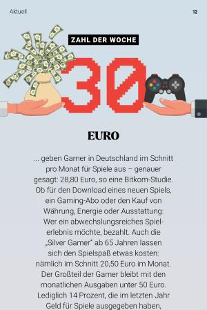 ... geben Gamer in Deutschland im Schnitt pro Monat für Spiele aus – genauer gesagt: 28,80 Euro, so eine Bitkom-Studie. Ob für den Download eines neuen Spiels, ein Gaming-Abo oder den Kauf von Währung, Energie oder Ausstattung: Wer ein abwechslungsreiches Spielerlebnis möchte, bezahlt. Auch die „ Silver Gamer“ ab 65 Jahren lassen sich den Spielspaß etwas kosten: nämlich im Schnitt 20,50 Euro im Monat. Der Großteil der Gamer bleibt mit den monatlichen Ausgaben unter 50 Euro. Lediglich 14 Prozent, die im letzten Jahr Geld für Spiele ausgegeben haben, überschreiten diese Grenze. Klar, die Games-Branche erwirtschaftet jährlich Hunderte von Milliarden US-Dollar Umsatz – irgendwo muss die Kohle herkommen!