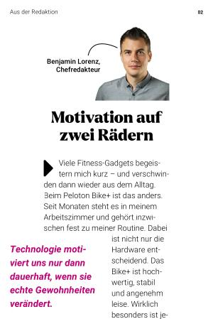 Günstig ist das Konzept nicht – zum Anschaffungspreis kommt ein monatliches Abo. Doch im Gegensatz zu vielen Fitnessprodukten bleibt der Mehrwert spürbar, weil ständig neue Inhalte erscheinen. Smart-Bikes entwickeln sich so von Trainingsgeräten zu Motivationsplattformen. Mehr dazu im Titelthema.