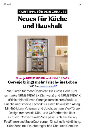 Gorenje NRM819D61BX und NRM819D61X Gorenje bringt mehr Frische ins Leben 1.040 Euro, weitere Infos �