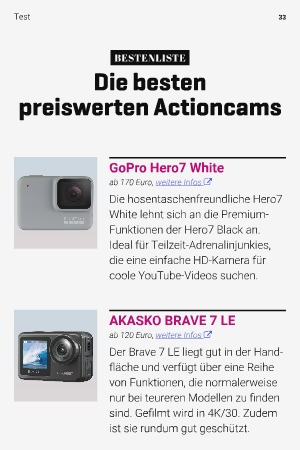 Der Brave 7 LE liegt gut in der Handfläche und verfügt über eine Reihe von Funktionen , die normalerweise nur bei teureren Modellen zu finden sind . Gefilmt wird in 4K / 30 . Zudem ist sie rundum gut geschützt .