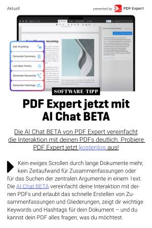 Die AI Chat BETA von PDF Expert vereinfacht die Interaktion mit deinen PDFs deutlich . Probiere PDF Expert jetzt kostenlos aus !