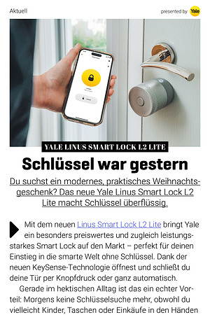 Du suchst ein modernes, praktisches Weihnachtsgeschenk? Das neue Yale Linus Smart Lock L2 Lite macht Schlüssel überflüssig.