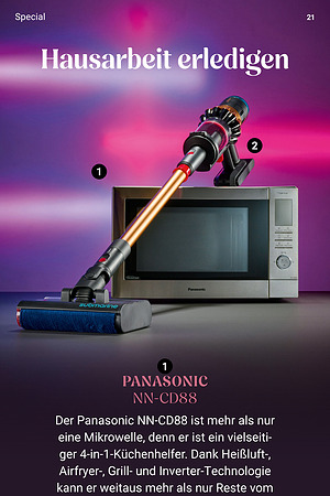 Der Panasonic NN-CD88 ist mehr als nur eine Mikrowelle, denn er ist ein vielseitiger 4-in-1-Küchenhelfer. Dank Heißluft-, Airfryer-, Grill- und Inverter-Technologie kann er weitaus mehr als nur Reste vom Vortag aufwärmen. So wird der Alltag in der Küche wirklich unkompliziert. 470 Euro, weitere Infos �