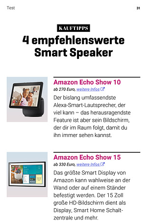 Das größte Smart Display von Amazon kann wahlweise an der Wand oder auf einem Ständer befestigt werden. Der 15 Zoll große HD-Bildschirm dient als Display, Smart Home Schaltzentrale und mehr.