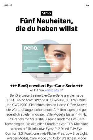 +++ BenQ erweitert Eye-Care-Serie +++ ab 110 Euro, weitere Infos �