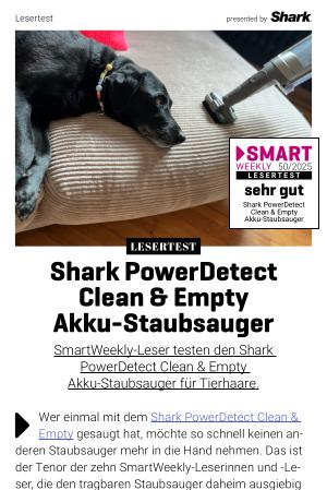 Empty gesaugt hat, möchte so schnell keinen anderen Staubsauger mehr in die Hand nehmen. Das ist der Tenor der zehn SmartWeekly-Leserinnen und-Leser, die den tragbaren Staubsauger daheim ausgiebig ausprobiert haben – von der Kleinfamilie bis zum Singlehaushalt, vom Stadtapartment bis zum Einfamilienhaus mit Haustieren. Der Akkusauger aus dem Hause Shark hinterließ dabei vor allem den Eindruck: Endlich passen gründliche Reinigung und Komfort zusammen.