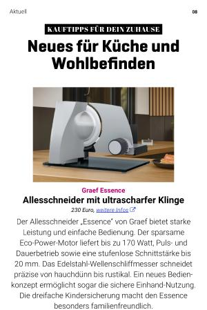 Graef Essence Allesschneider mit ultrascharfer Klinge 230 Euro, weitere Infos �