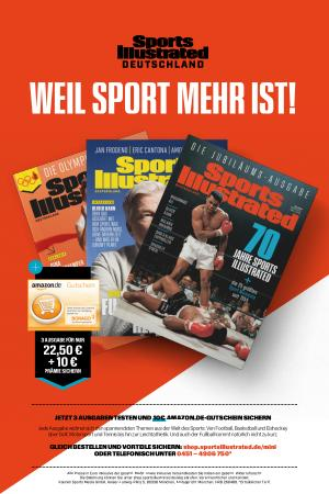 Alle Preise in Euro inklusive der gesetzl . MwSt . sowie inklusive Versandkosten . Sie haben ein gesetzl . Widerrufsrecht . Die Belehrung können Sie unter shop . sportsillustrated . de / abg abrufen . Verantwortlicher und Kontakt : Kouneli Sports Media GmbH , Kaiser-Ludwig-Platz 5 , 80336 München , Amtsgericht München , HRB 269489 . * Ortsüblicher Tarif .