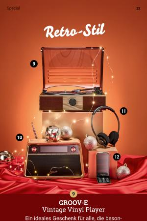 Ein ideales Geschenk für alle, die besonders große Weihnachtsstrümpfe günstig füllen möchten: Der Vinyl-Plattenspieler von Groov-E kostet ungefähr so viel wie ein paar aktuelle LPs. Wer einen Turntable zum perfekten Musikgenuss verschenken möchte, trifft mit diesem Gerät genau ins Schwarze, denn es wandelt Schallplatten-Schwingungen in ein klares Bluetooth-5.4-Signal um und bietet damit zahlreiche Anschlussmöglichkeiten. 60 Euro, weitere Infos �