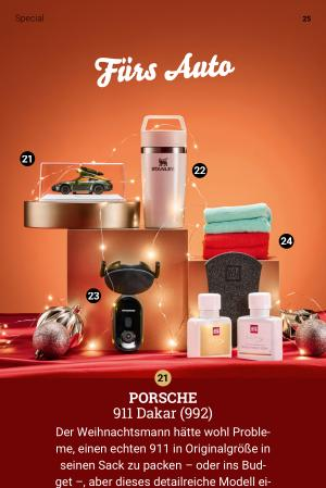 Der Weihnachtsmann hätte wohl Probleme, einen echten 911 in Originalgröße in seinen Sack zu packen – oder ins Budget –, aber dieses detailreiche Modell eines Dakar( die Offroad-Version des 911 auf Basis des 992 Carrera 4 GTS) passt problemlos hinein. Und wer behauptet, der 911 sei nicht praktisch, sieht mit dem festlich geschmückten Baum auf dem Dach das genaue Gegenteil. 80 Euro, weitere Infos �