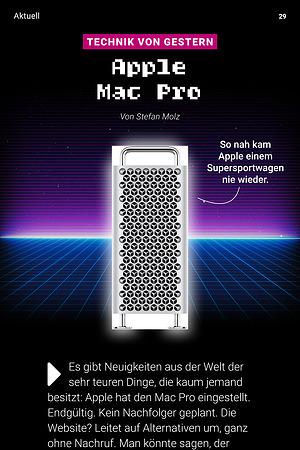 Ich bin Stefan Molz, Chefredakteur der Mac Life und seit Jahrzehnten Apple- Anwender. Einen Mac Pro hatte ich nie. Aber bewundert habe ich ihn immer.