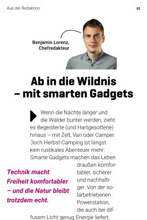Wenn die Nächte länger und die Wälder bunter werden, zieht es Begeisterte( und Hartgesottene) hinaus – mit Zelt, Van oder Camper. Doch Herbst-Camping ist längst kein rustikales Abenteuer mehr: Smarte Gadgets machen das Leben draußen komfortabler, sicherer und nachhaltiger. Von der solarbetriebenen Powerstation, die auch bei diffusem Licht genug Energie liefert, bis zum cleveren WLAN-Hotspot mit Satellitenlink für abgelegene Orte – die neuen Outdoor-Helfer verbinden Naturgefühl mit Technikliebe. Besonders spannend: smarte Heizsysteme, die via App Temperatur und Stromverbrauch