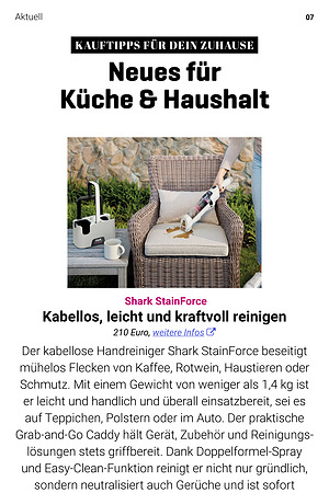 Shark StainForce Kabellos, leicht und kraftvoll reinigen 210 Euro, weitere Infos �