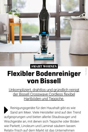 Sand am Meer . Viele Hersteller sind auf den Trend aufgesprungen und bieten allerlei Staubsauger und Wischgeräte an , mit denen sich Teppiche oder Böden wie Parkett , Linoleum und Laminat säubern lassen . Relativ frisch auf dem Markt ist das Unternehmen Bissell mit dem Crosswave Cordless ( 330 Euro ). Und der Haushaltshelfer präsentiert sich als besonders vielseitig , denn er reinigt sowohl feste Bodenbeläge als auch Teppiche besonders gründlich . Und so läuft der Reinigungsprozess in der Praxis ab : Vor der Reinigung wird der Tank des Bissells Crosswave Cordless mit Wasser und Reinigungsmittel befüllt . Diese Mischung wird dann während des Wischvorgangs auf die Reinigungswalzen gepumpt , um Schmutz von harten Bodenbelägen gründlich zu entfernen . Das so entstehende Abwasser wird über einen kräftigen Saugmechanismus in den Abwassertank gesaugt . Das hat gleichzeitig den Vorteil , dass die Flächen nach dem Wischvorgang besonders schnell trocknen . Mit einer Akkuladung ist der Bissells Crosswave Cordless bis zu 25 Minuten einsatzbereit .