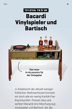 In Anbetracht der aktuell weniger fröhlichen Weihnachtszeit könnten wir doch alle ein wenig Karibik-Feeling brauchen . Passen dazu präsentiert Bacardi eine Mischung aus Vinylspieler und Bartisch , der die trüben Gedanken vergessen lässt : die Bacardi Mixing Console .