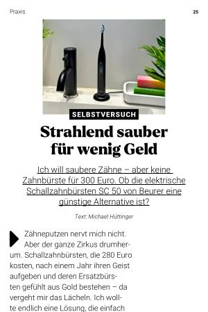 Ich will saubere Zähne – aber keine Zahnbürste für 300 Euro. Ob die elektrische Schallzahnbürsten SC 50 von Beurer eine günstige Alternative ist?