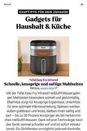 Tefal Easy Fry Infrared Schnelle, knusprige und saftige Mahlzeiten 230 Euro, weitere Infos �