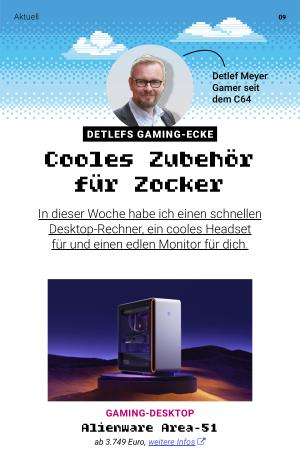 In dieser Woche habe ich einen schnellen Desktop-Rechner, ein cooles Headset für und einen edlen Monitor für dich.