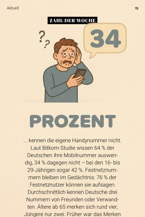 ... kennen die eigene Handynummer nicht. Laut Bitkom-Studie wissen 64 % der Deutschen ihre Mobilnummer auswendig, 34 % dagegen nicht – bei den 16- bis 29-Jährigen sogar 42 %. Festnetznummern bleiben im Gedächtnis: 76 % der Festnetznutzer können sie aufsagen. Durchschnittlich kennen Deutsche drei Nummern von Freunden oder Verwandten. Ältere ab 65 merken sich rund vier, Jüngere nur zwei. Früher war das Merken selbstverständlich – heute übernehmen Kontaktlisten im Smartphone. In Notfällen kann Kopfwissen aber Gold wert sein.