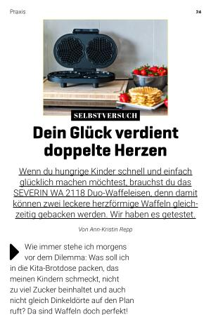 Wenn du hungrige Kinder schnell und einfach glücklich machen möchtest, brauchst du das SEVERIN WA 2118 Duo-Waffeleisen, denn damit können zwei leckere herzförmige Waffeln gleichzeitig gebacken werden. Wir haben es getestet.