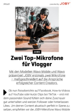 Mit den Modellen Wavo Mobile und Wavo präsentiert JOBY erstmals zwei Mikrofone – maßgeschneidert auf die Ansprüche erfolgreicher Content Creators .