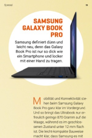 In der Grundausstattung kommt das Samsung Galaxy Book Pro mit einem Wi-Fi-6-Modul . Wer viel unterwegs arbeitet , rüstet das Ultrabook gegen Aufpreis mit einem 4G- / LTE- Modul aus . Sicher wäre hier zukunftsweisendes 5G wünschenswert gewesen , aber die Apple-Konkurrenz bietet nicht einmal 4G als Option an . Auch diesen Punkt kann das Samsung-Ultrabook also für sich verbuchen .
