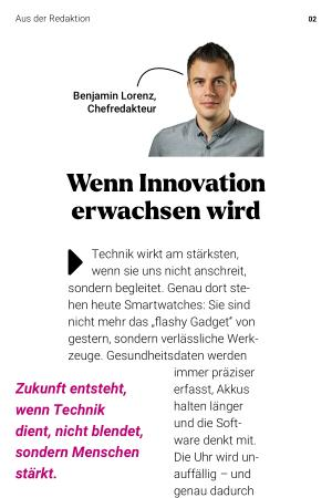 Zukunft entsteht, wenn Technik dient, nicht blendet, sondern Menschen stärkt. erfasst, Akkus halten länger und die Software denkt mit. Die Uhr wird unauffällig – und genau dadurch unverzichtbar. So auch an meinem Handgelenk seit etwa fünf Jahren. Welches Modell sich für dich lohnt, zeigt unser großes Special.
