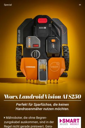 � Mähroboter, die ohne Begrenzungskabel auskommen, sind in der Regel nicht gerade preiswert. Gerade diese Tatsache macht den Worx Landroid Vision AI S250 besonders, denn er ist locker 25 % preiswerter als der LUBA Mini AWD und deutlich günstiger als der Eufy E15. Dennoch verfügt der Preisbrecher über eine hochauflösende Kamera mit HDR sowie ein vernetztes KI-Neuralnetzwerk, um mit hoher Genauigkeit über den Rasen zu navigieren.