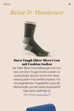 Darn Tough Hiker Micro Crew mit Cushion Socken Die Hiker Micro Crew Midweight mit Cushion von Darn Tough ist eine extrem robuste Socke , die sich durch ihre Verarbeitung jedem Fuß perfekt anpasst . Für ein angenehmes Tragegefühl sorgt die Merinowolle , aus der diese strapazierfähige Socke gefertigt ist .
