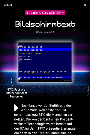 Noch lange vor der Einführung des World Wide Web sollte der Bildschirmtext , kurz BTX , die Menschen vernetzen . Die von der Deutschen Post entwickelte Technologie wurde bereits auf der IFA im Jahr 1977 präsentiert , erlangte aber erst in den 1980er-Jahren eine gewisse Verbreitung . Über ein spezielles Modem und einen Decoder konnten Nutzer Inhalte auf ihren TV oder BTX-Terminals abrufen . Grafisch nicht weit vom Videotext entfernt erlaubte BTX aber vor allem Interaktion . So konnte es unter anderem für Nachrichten sowie frühe Formen von Online-Shopping oder Online-Banking genutzt werden .