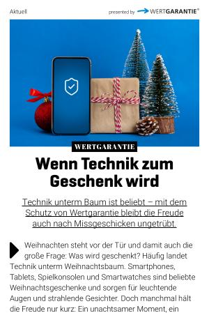 Wertgarantie steht nicht nur für finanziellen Schutz, sondern auch für ein gutes Gefühl: den Komfort eines echten Rundum-sorglos-Pakets, transparente Leistungen und schnelle Hilfe, wenn’ s drauf ankommt. So bleibt die Freude an neuen Technik-Geschenken ungetrübt – auch nach einem Missgeschick. Denn Weihnachten ist die Zeit der Freude, nicht der Sorgen.