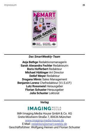 IMH Imaging Media House GmbH & Co . KG Grete-Mosheim-Straße 7 , 80636 München www . imaging-media-house . de E-Mail : redaktion @ smart-weekly . de Geschäftsführer : Wolfgang Heinen und Florian Schuster