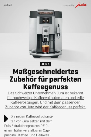 Maßgeschneidertes Zubehör für perfekten Kaffeegenuss Das Schweizer Unternehmen Jura ist bekannt für hochwertige Kaffeevollautomaten und edle Kaffeeröstungen . Und mit dem passenden Zubehör von Jura wird der Kaffeegenuss perfekt .