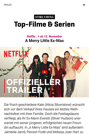 Die frisch geschiedene Kate( Alicia Silverstone) wünscht sich vor dem Verkauf ihres Hauses ein letztes Weihnachtsfest mit ihrer Familie. Doch die Festtagslaune verfliegt, als ihr Ex-Mann Everett( Oliver Hudson) unerwartet mit seiner jüngeren, erfolgreichen neuen Freundin auftaucht. In „ A Merry Little Ex-Mas“ sind außerdem Jameela Jamil, Pierson Fodé und Melissa Joan Hart zu sehen. Die Regie führte Steve Carr.