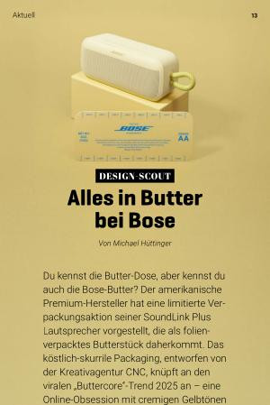 Du kennst die Butter-Dose, aber kennst du auch die Bose-Butter? Der amerikanische Premium-Hersteller hat eine limitierte Verpackungsaktion seiner SoundLink Plus Lautsprecher vorgestellt, die als folienverpacktes Butterstück daherkommt. Das köstlich-skurrile Packaging, entworfen von der Kreativagentur CNC, knüpft an den viralen „ Buttercore“-Trend 2025 an – eine Online-Obsession mit cremigen Gelbtönen und milchig-inspirierten Looks, die längst Mode und Interieur erfasst haben.