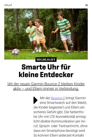 Das Design der Garmin Bounce 2 ist robust, kindgerecht und stylisch zugleich. Mit ihrem hellen 1,2-Zoll-AMOLED-Touchdisplay, zwei leicht bedienbaren Seitentasten und einer Wasserfestigkeit bis 5 ATM ist sie für den Alltag bestens gerüstet – vom Toben im Garten bis zum Sprung ins Schwimmbecken. Der Akku hält bis zu zwei Tage durch, bevor die Uhr wieder aufgeladen werden muss. Die Garmin Bounce 2 ist für 300 Euro im Fachhandel oder online erhältlich.